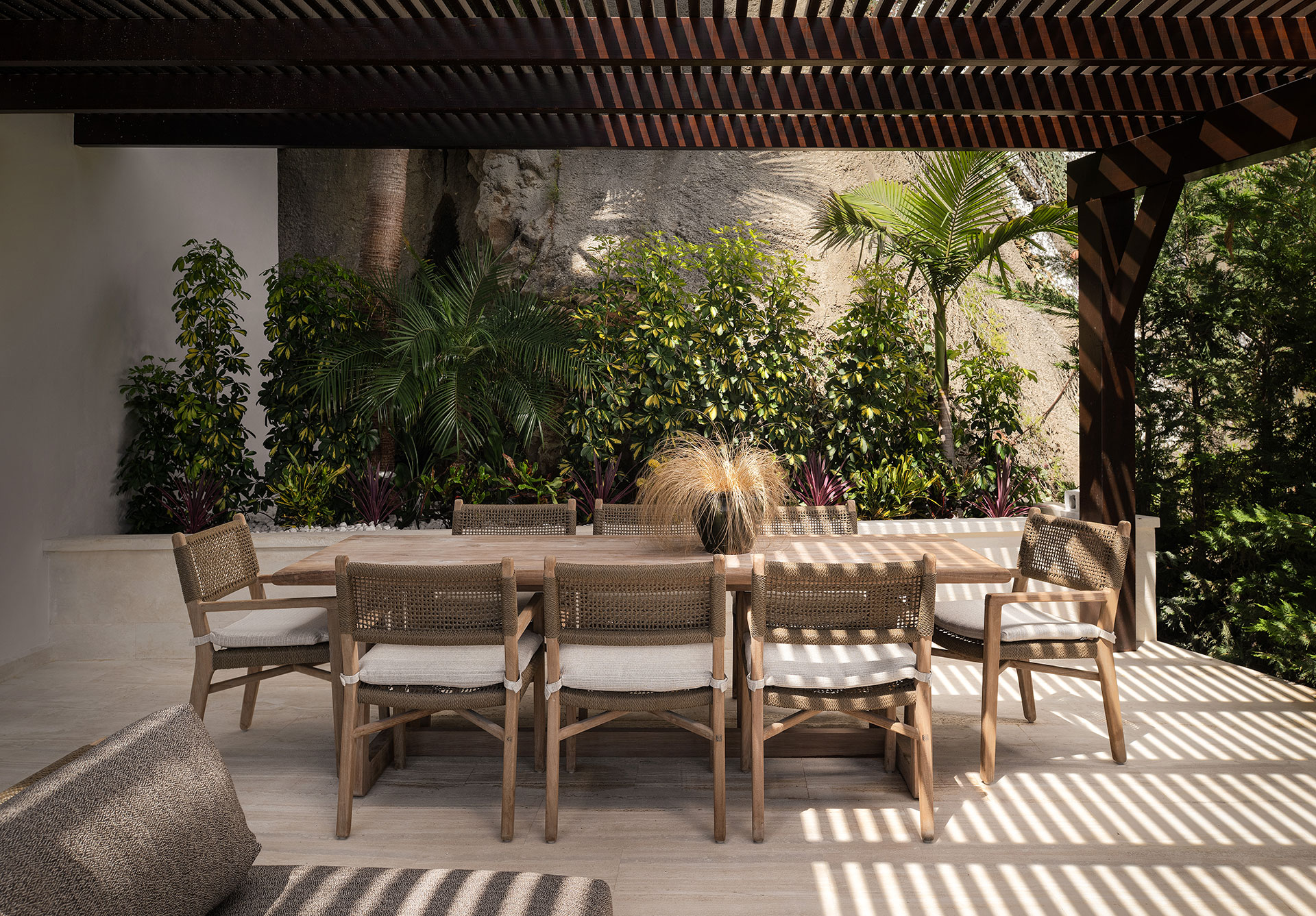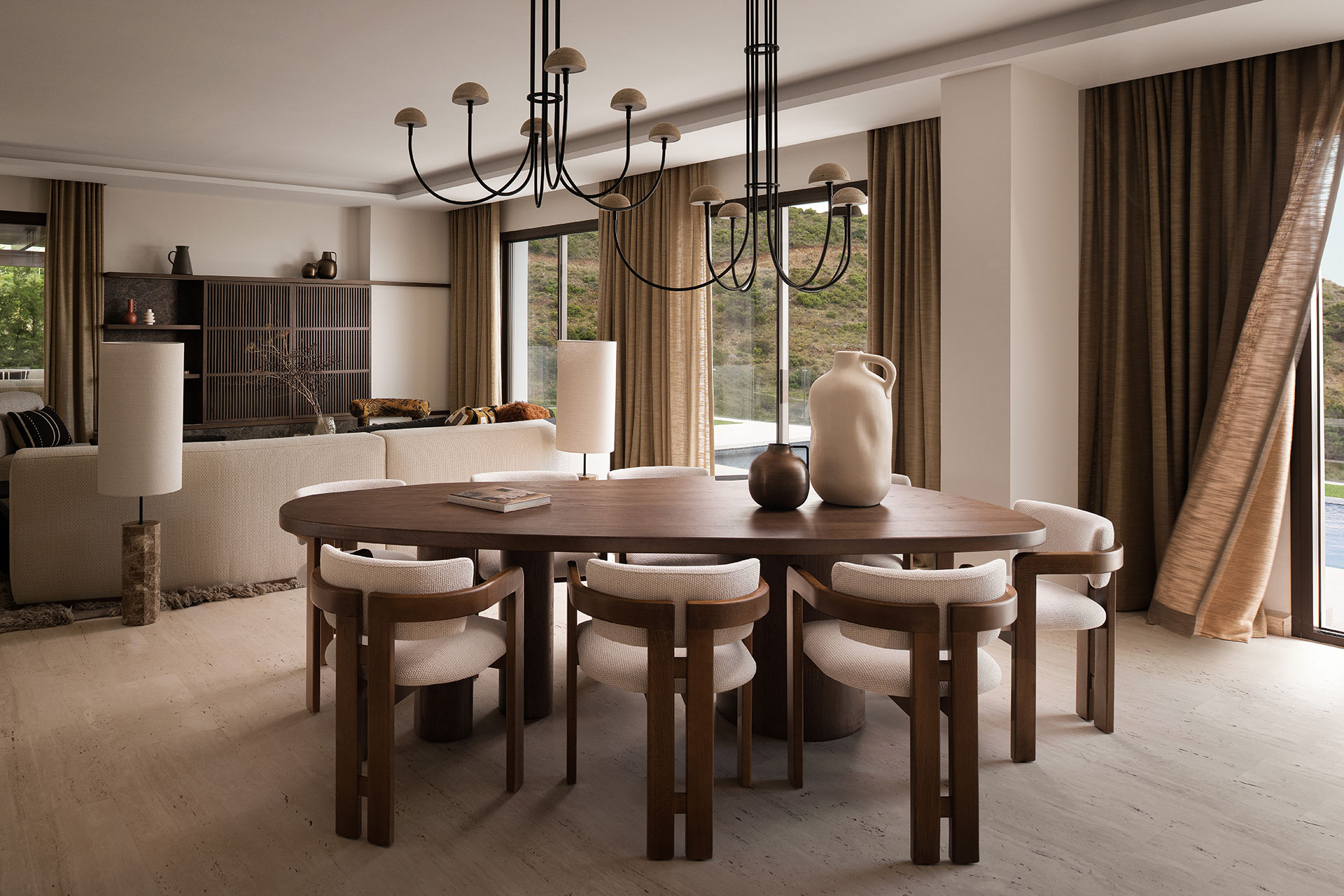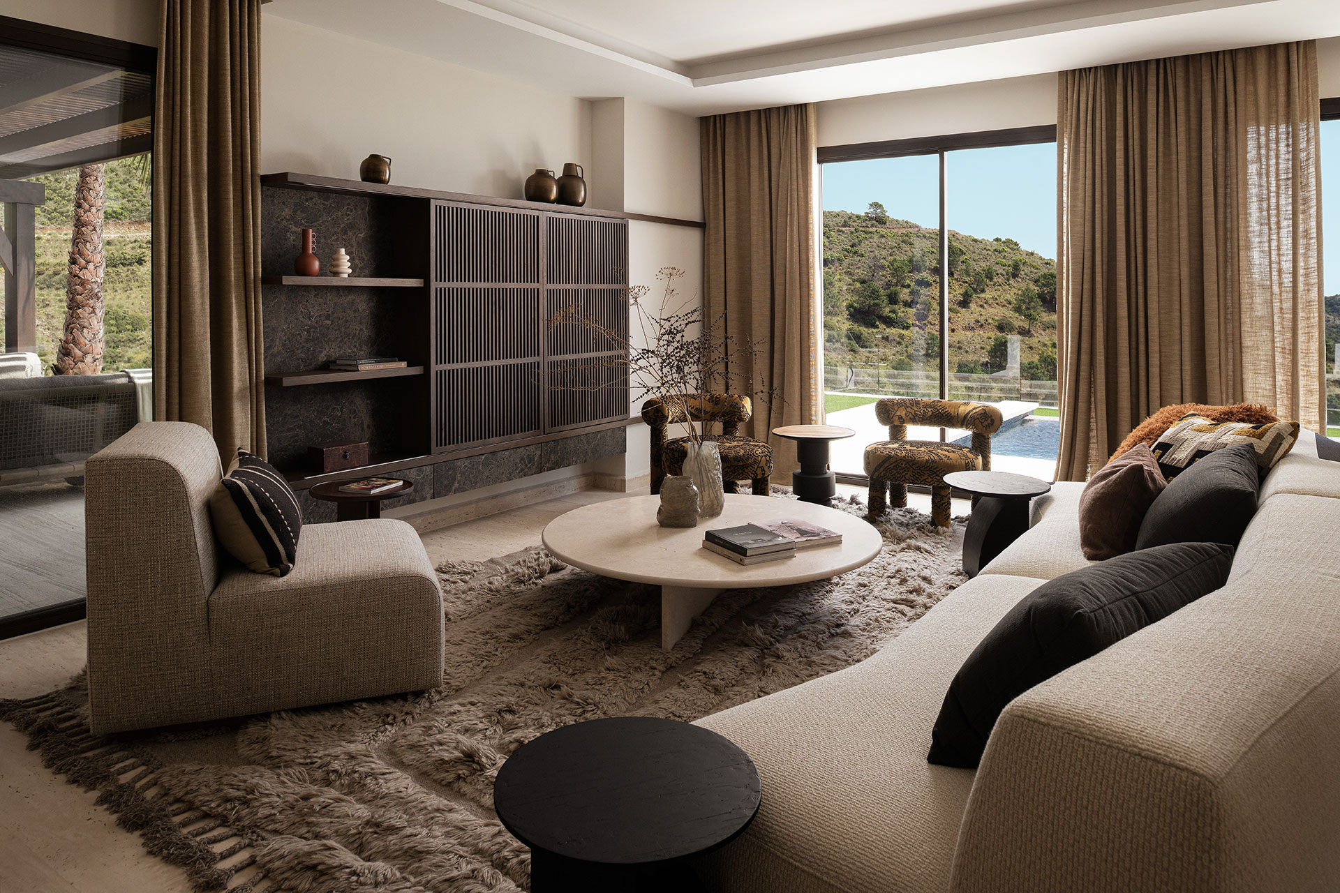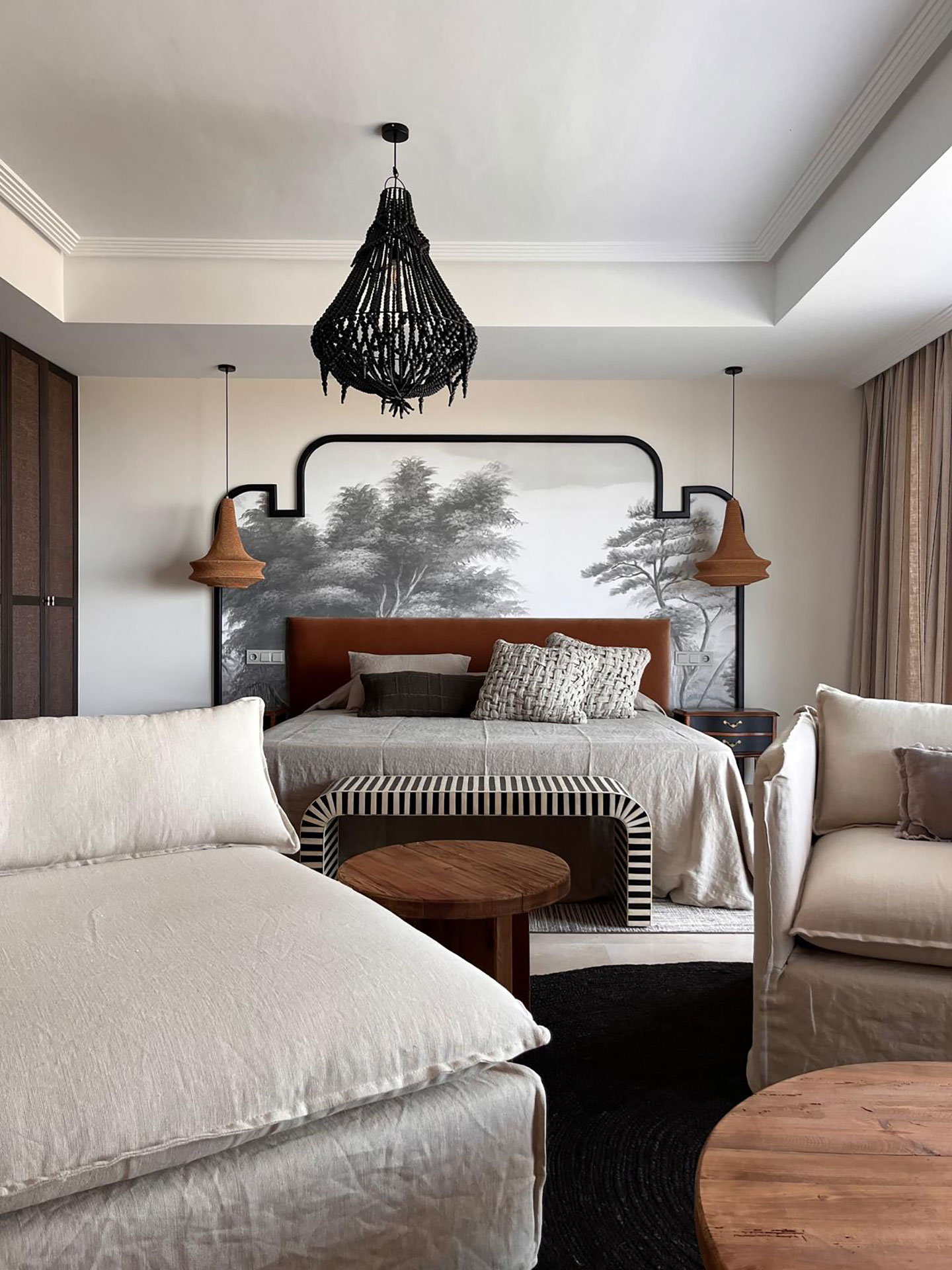 Following the clients' preferences, we embraced Mediterranean trends with African influences. Fine fabrics and materials lend the luxurious touch that is always sought after.